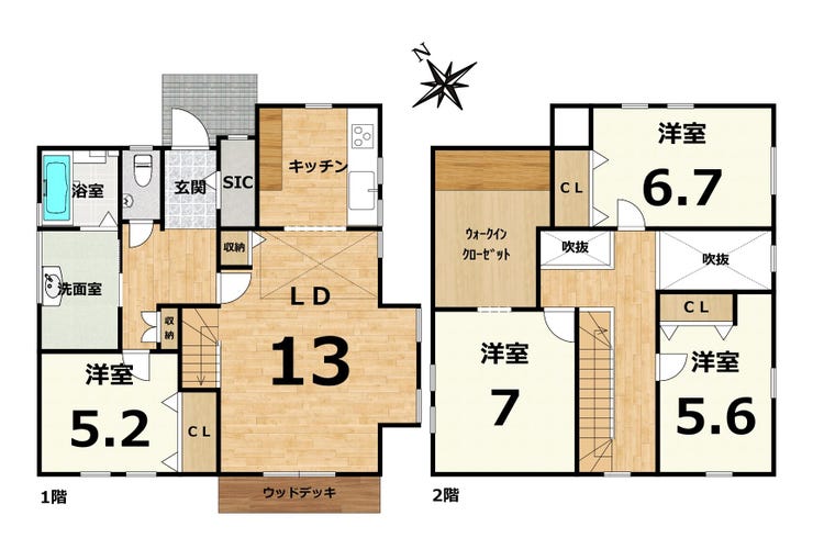 ◆1階に1部屋、2階に3部屋、4LDKのゆとりある間取りで、ファミリーにも最適!